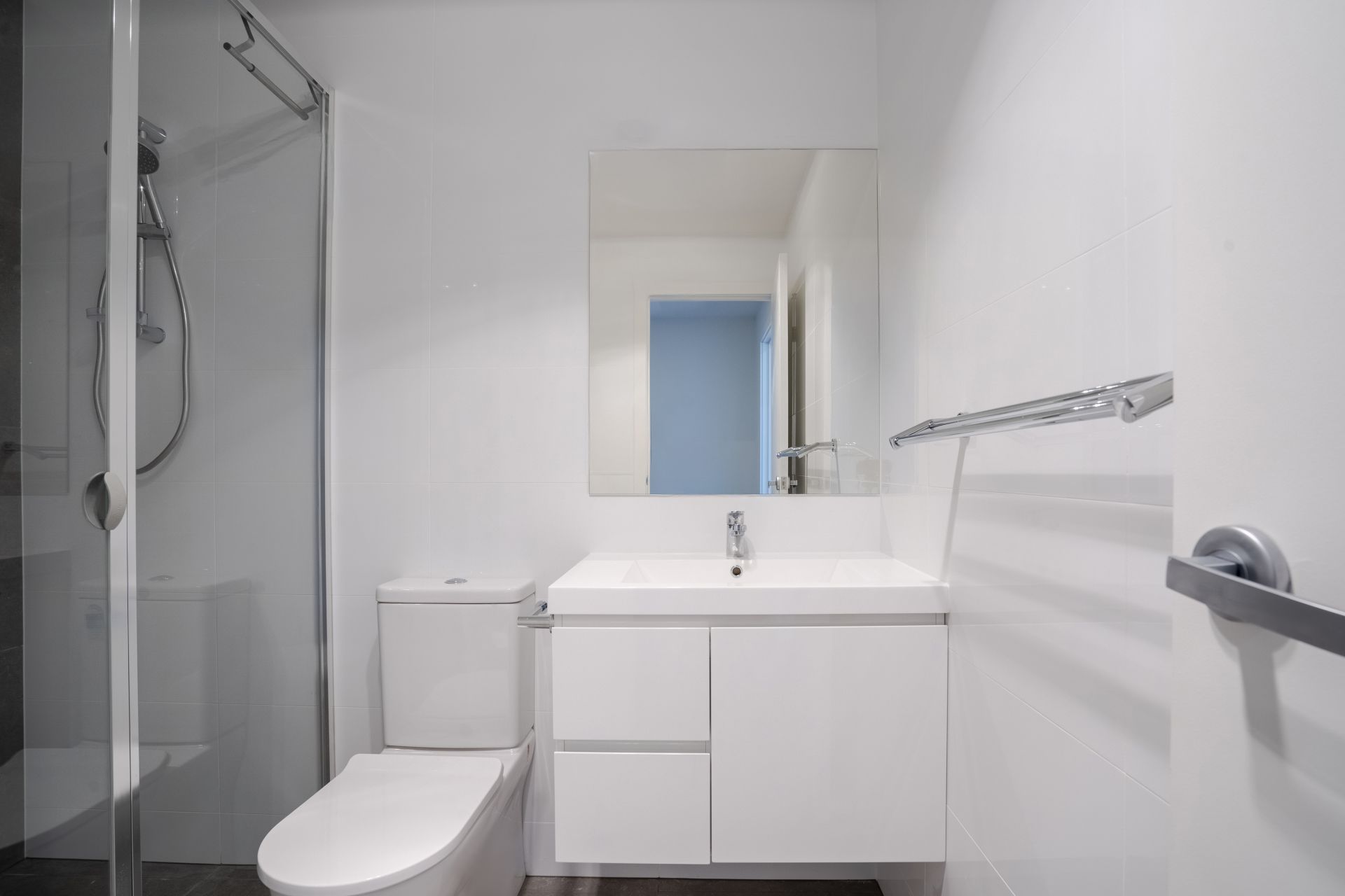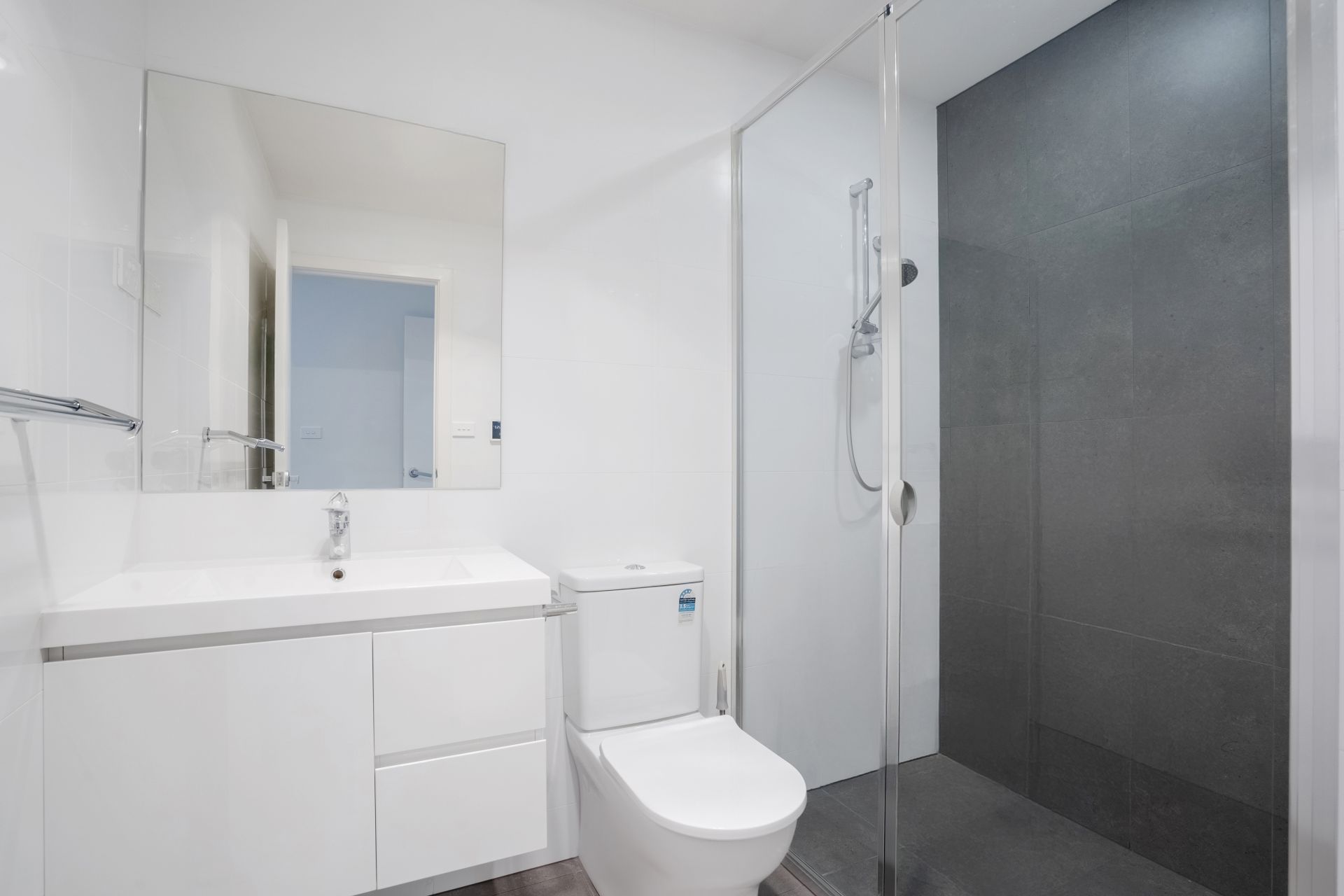 • Modern bathrooms with wall hung vanities, semi-frameless shower screens, & quality fixtures