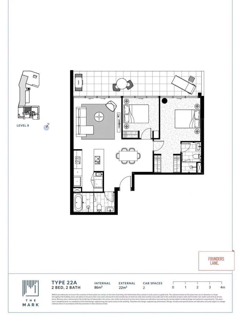 • Internal 86m2 + External 22m2