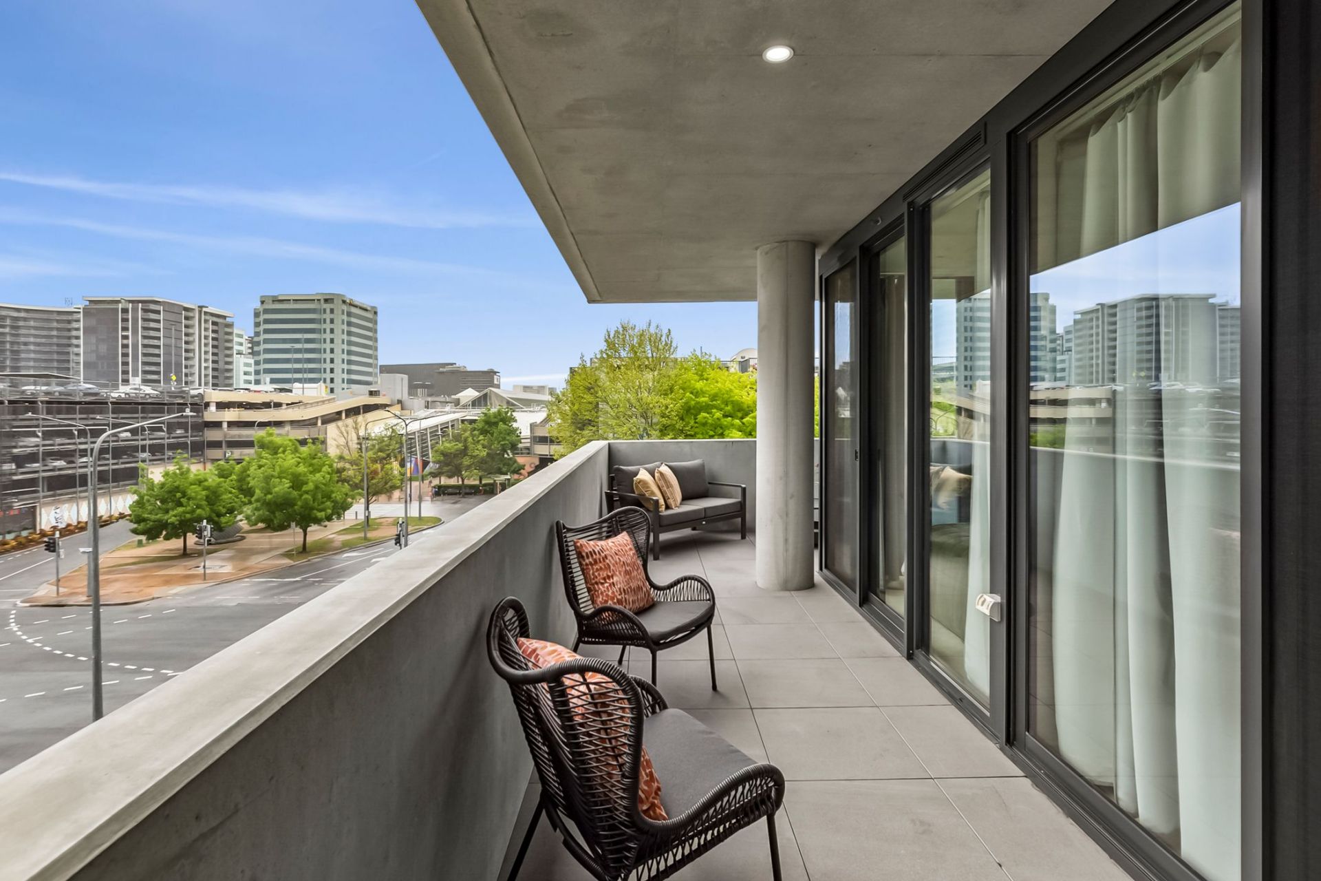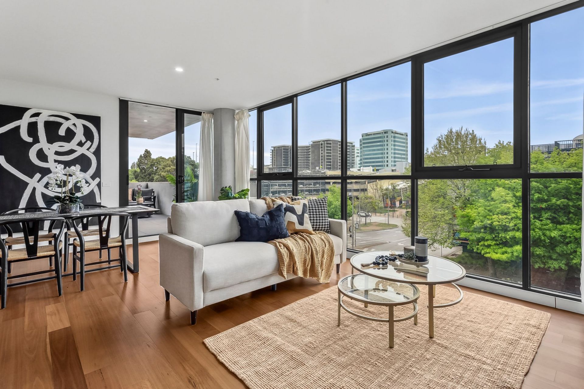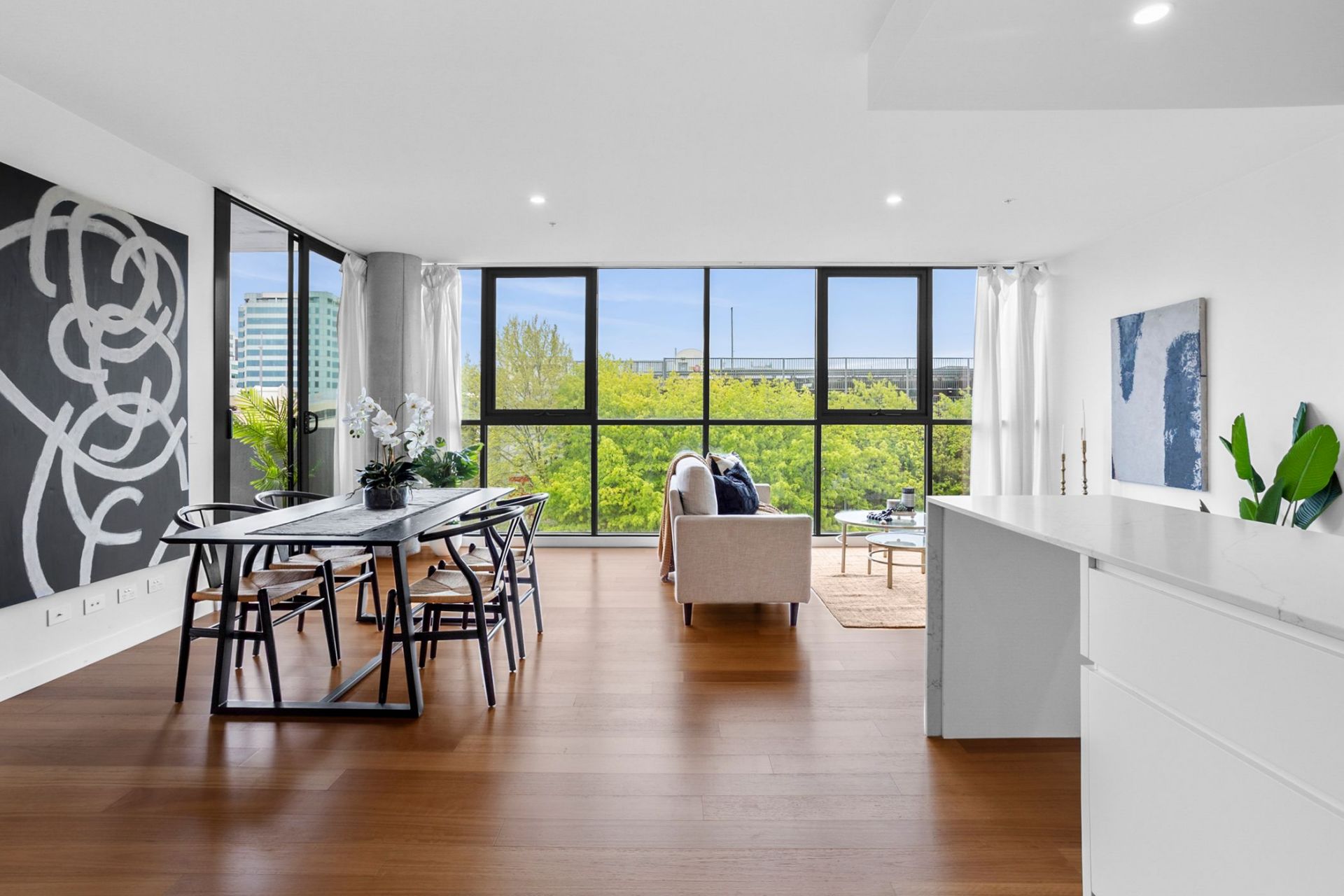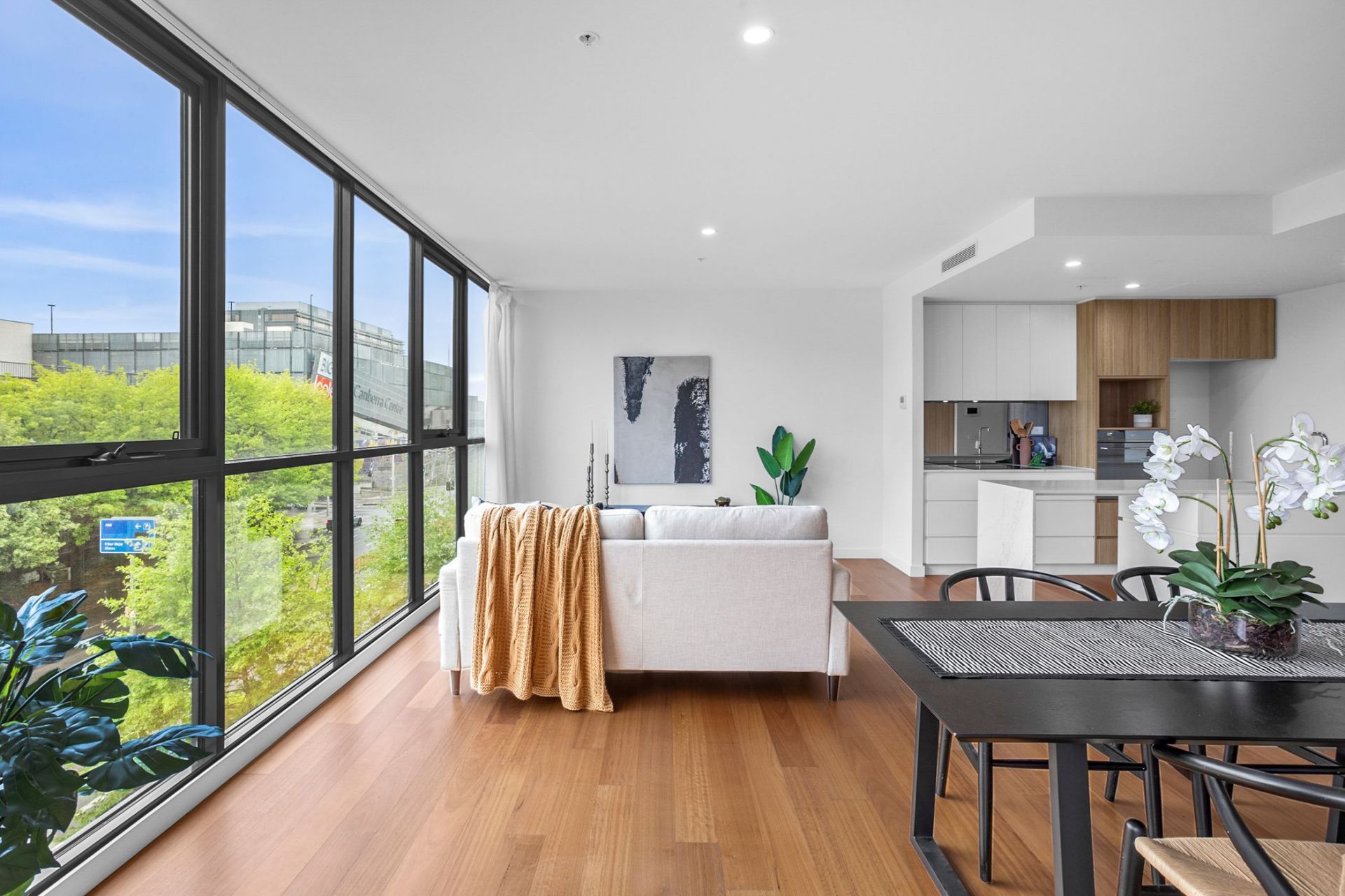 Extending off the modern kitchen, the combined living & dining area offers a spacious design with access out to balcony area which includes sweeping views of Canberra Centre.