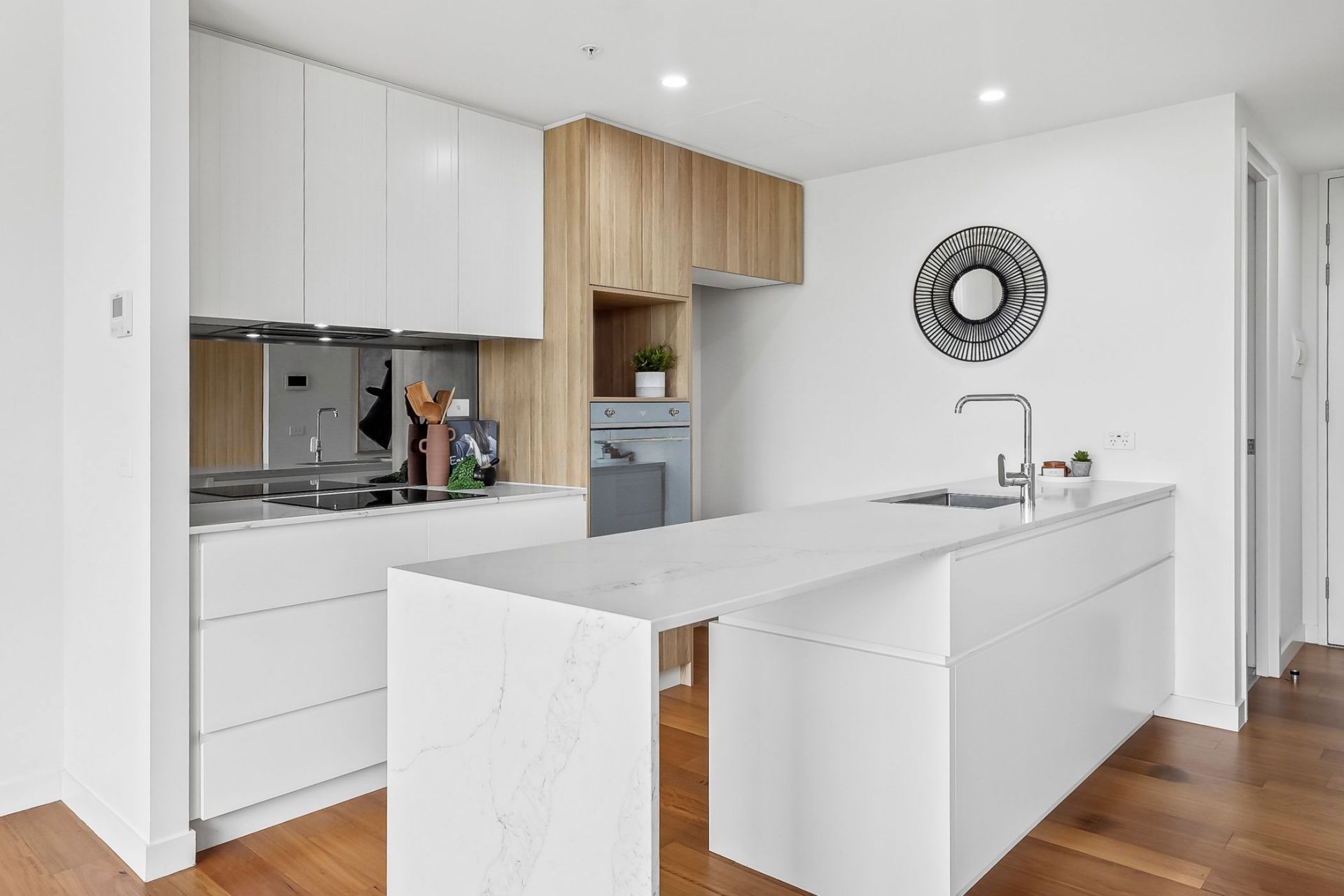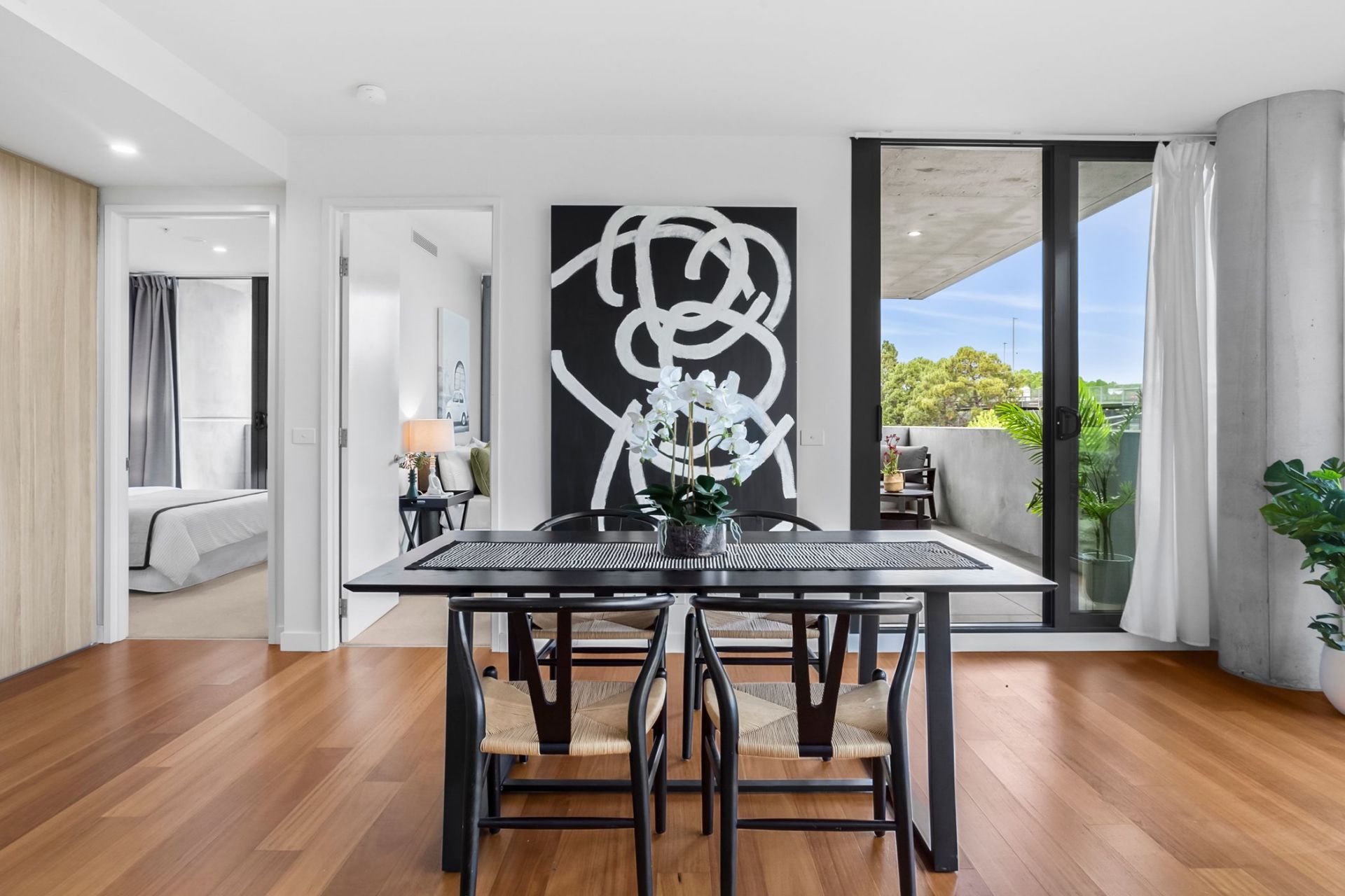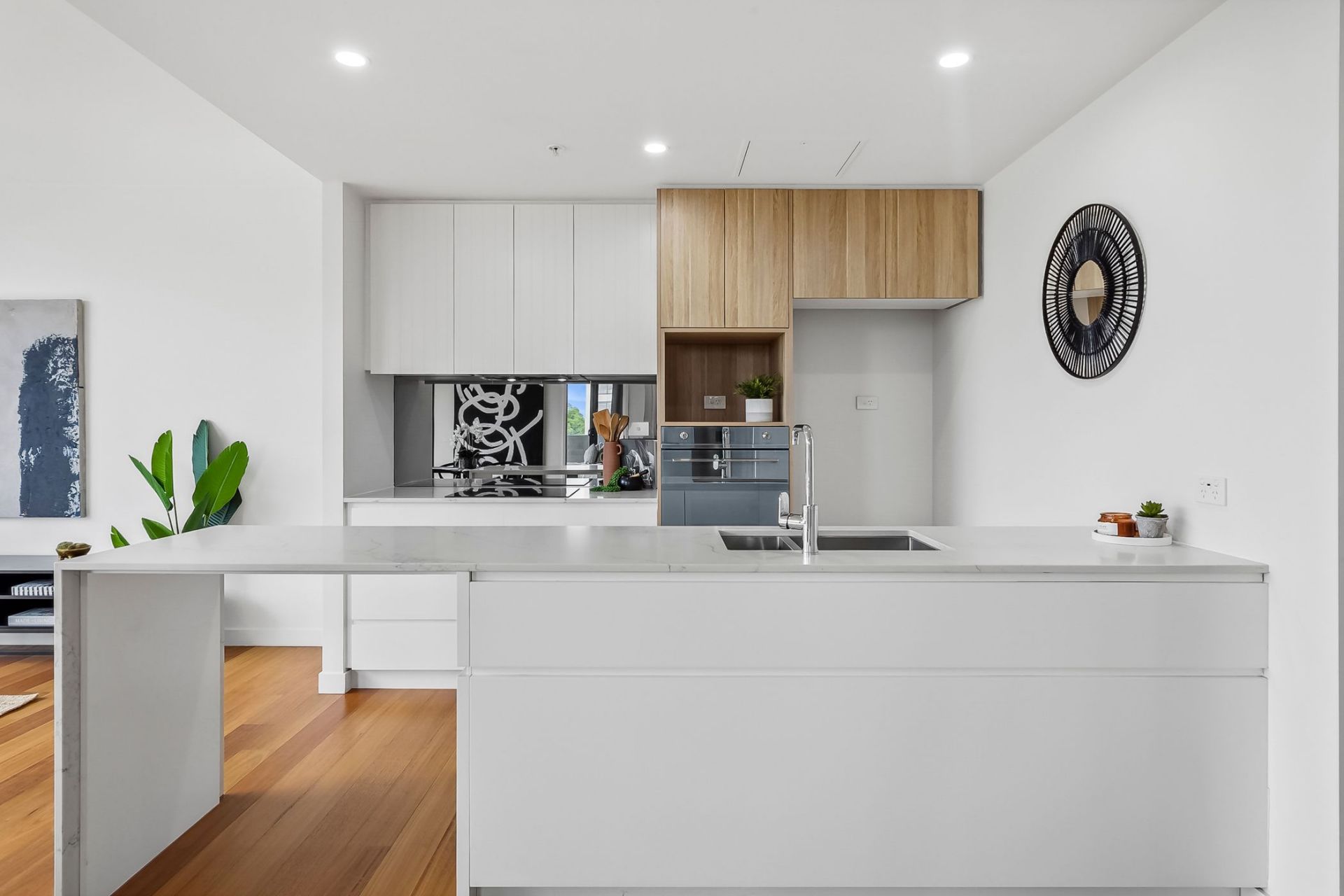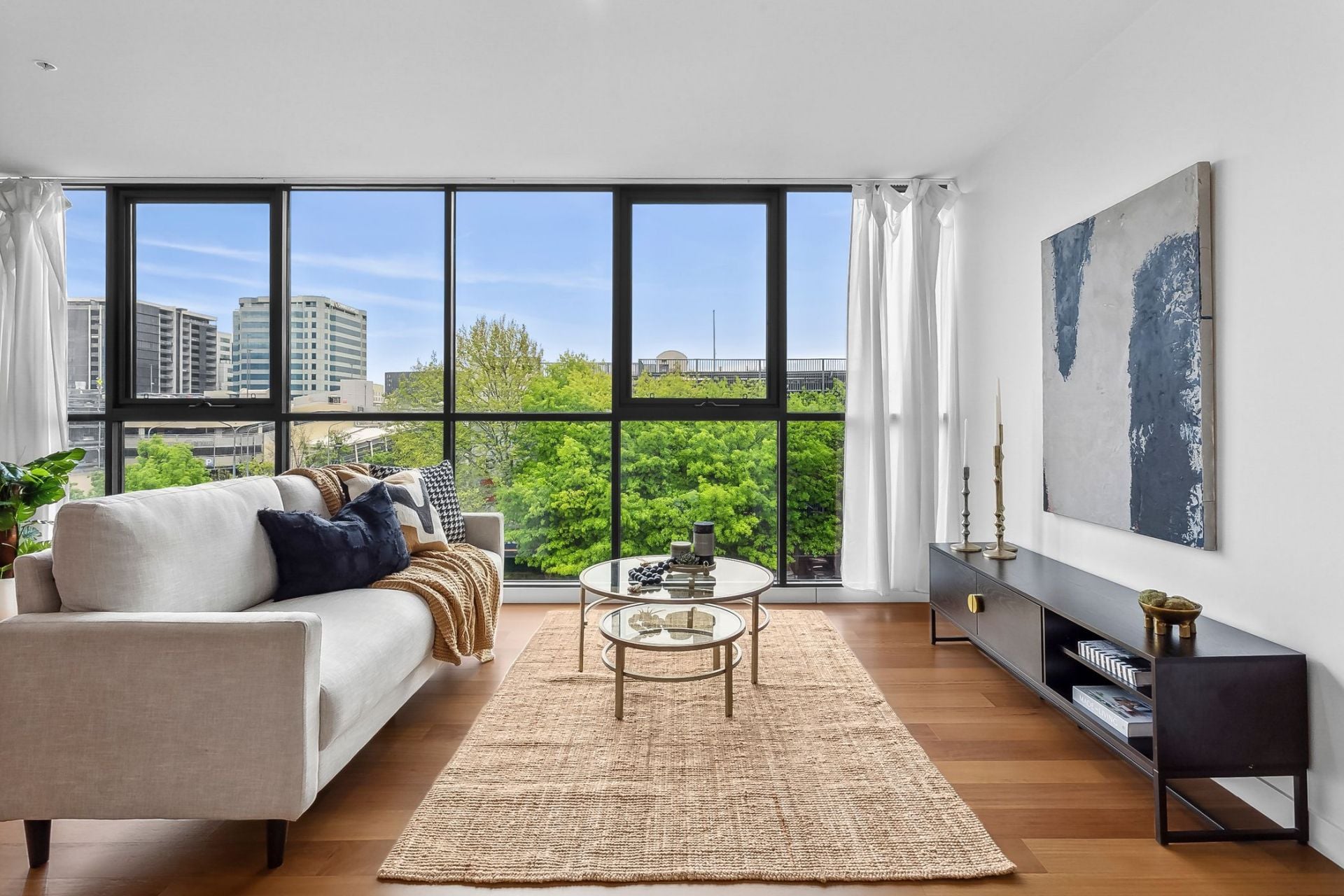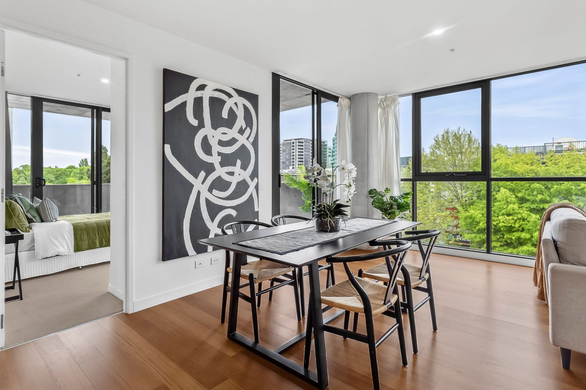 Extending off the modern kitchen, the combined living & dining area offers a spacious design with access out to balcony area which includes sweeping views of Canberra Centre.