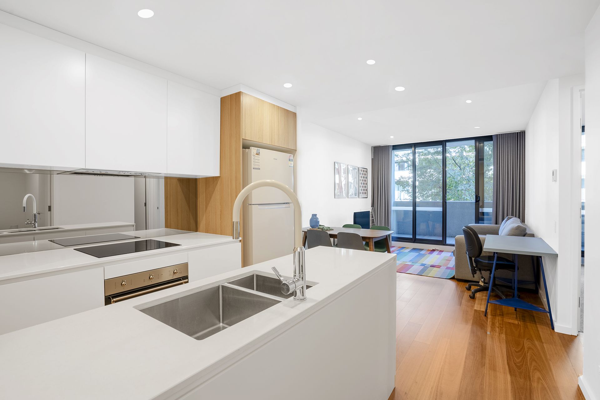 Extending off the modern kitchen, the combined living & dining area offers a spacious design.