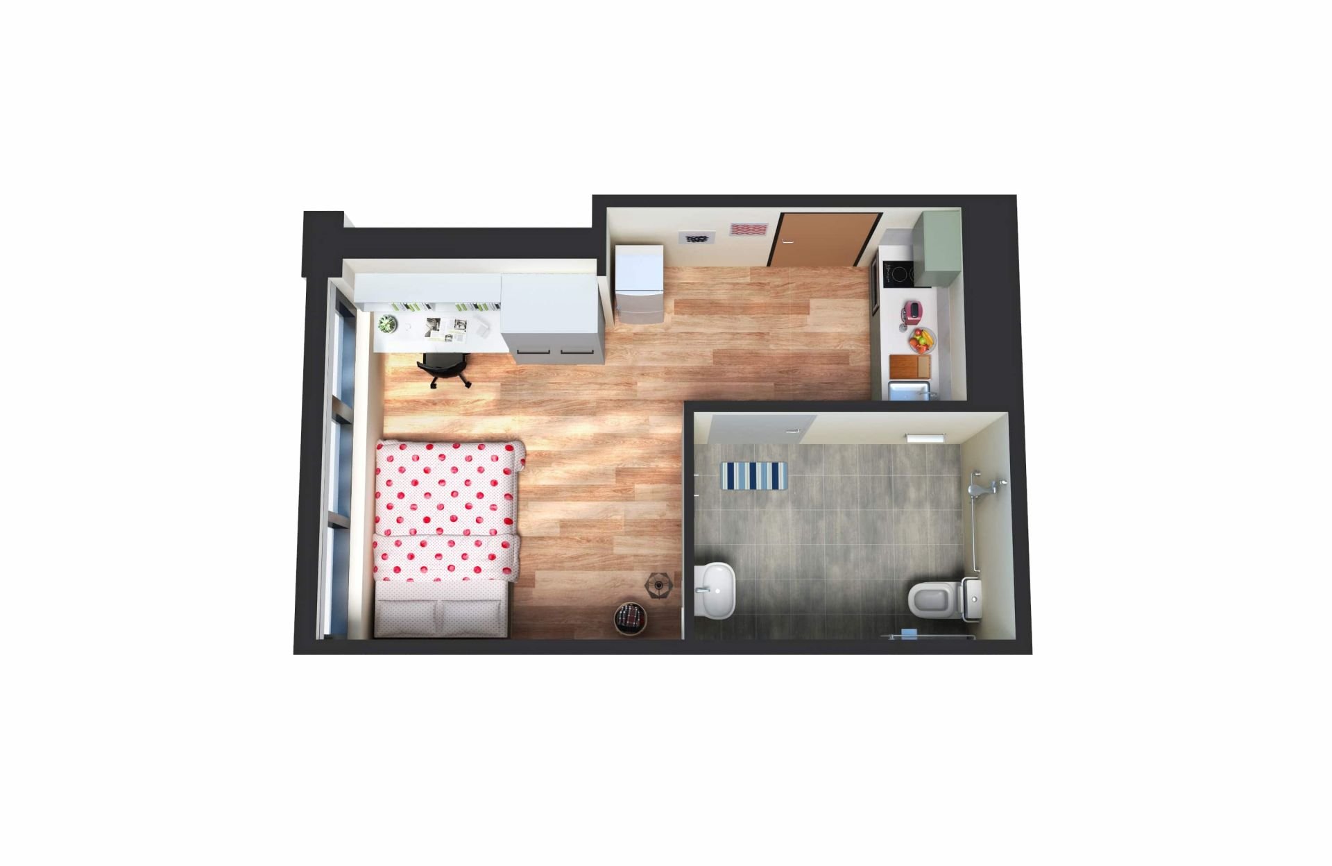 A large studio apartment equipped with a separate bathroom and kitchen. 【2 weeks rent free】