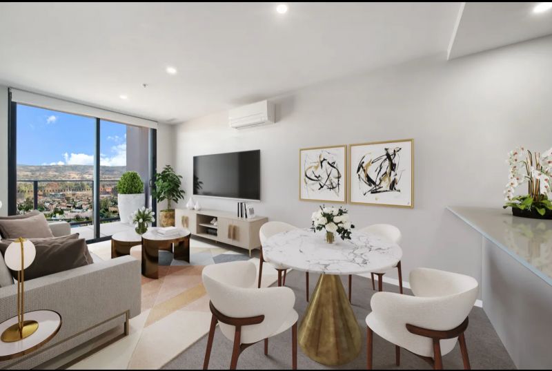 The apartment features well-appointed bedrooms with built-in wardrobes, sleek energy-efficient LED lighting, and the year-round comfort of reverse-cycle air conditioning.