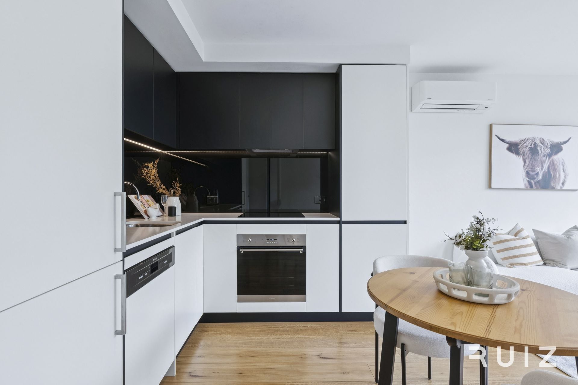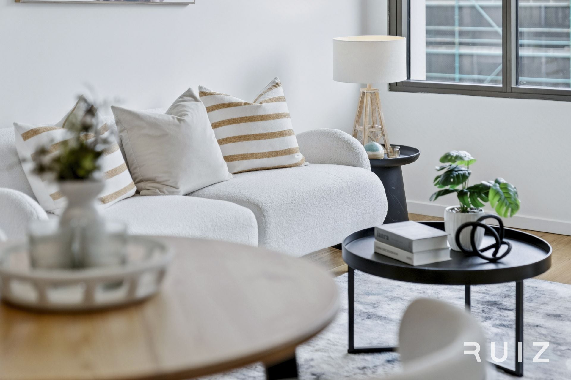 Spacious and bright living area with practical open-plan design