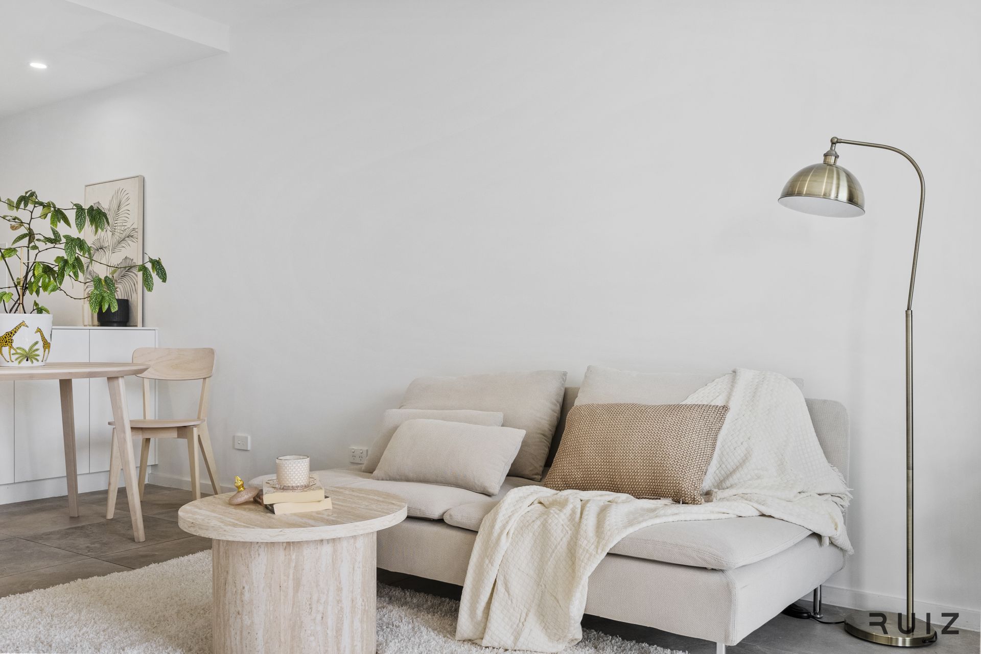 • Upgraded warm-toned tiled flooring