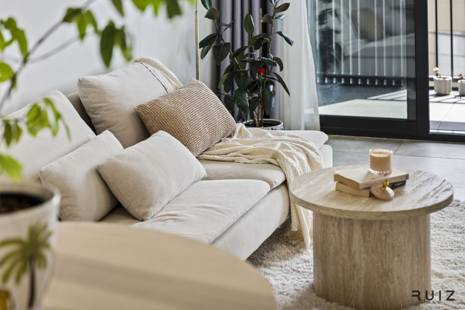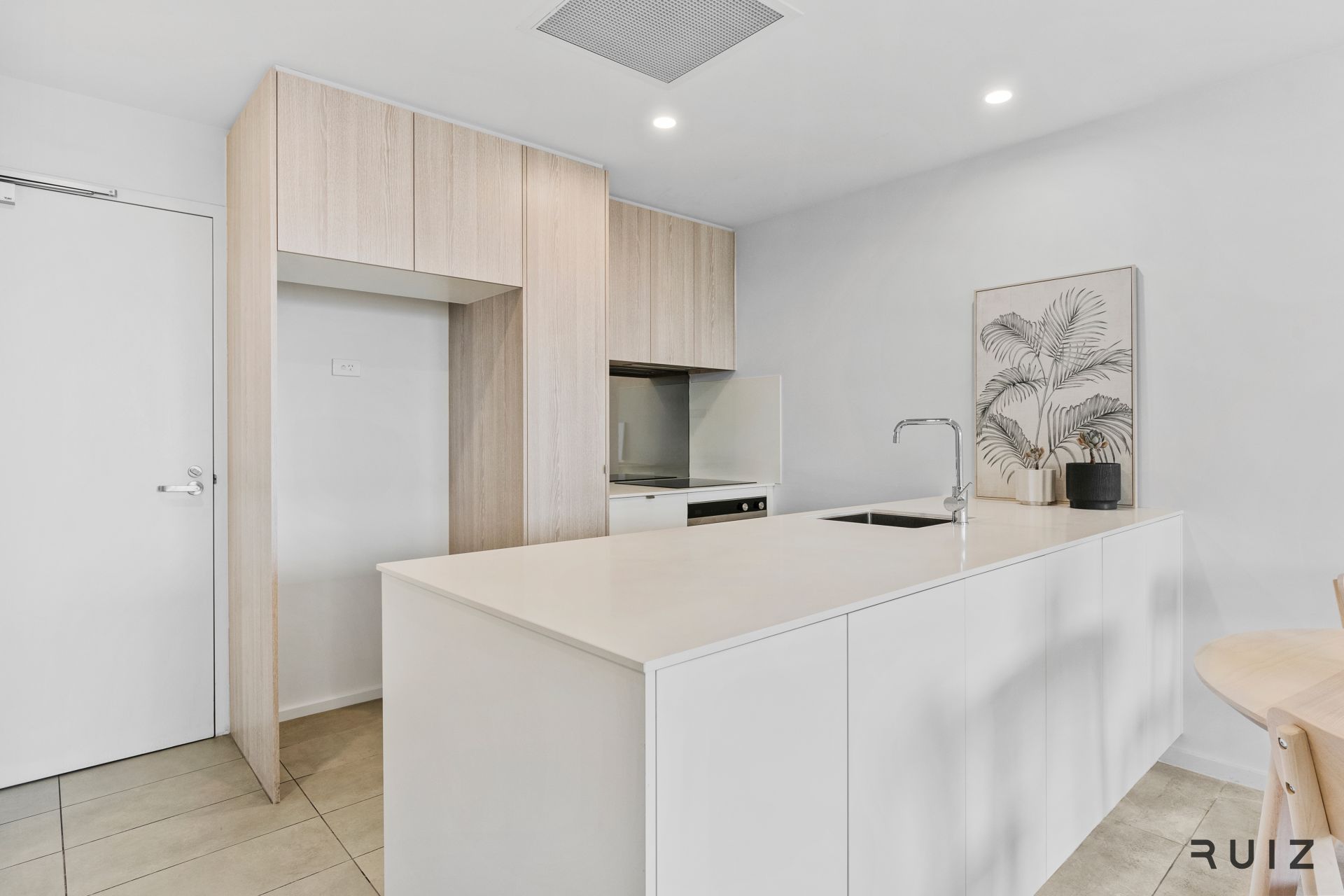 The 13sqm west-facing balcony enjoys beautiful afternoon sunlight while facing a quiet street, providing a peaceful retreat in this central Inner North location.
